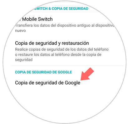 Aparecerás en una nueva pantalla. En el último apartado verás la opción “Copia de seguridad de Google” Pulsa aquí para continuar.