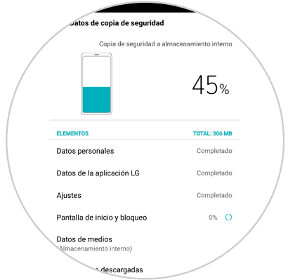 Se comenzará a realizar la copia de seguridad de los datos seleccionados en tu teléfono.