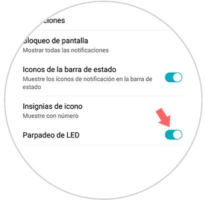 Finalmente, en la nueva pestaña encontraremos una opción la cual pone “Parpadeo de LED” Tenemos que mantener la pestaña en azul si queremos que se encuentra activa, o en gris si queremos desactivar esta opción.