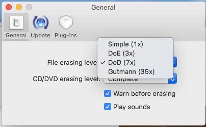 Ahora, podemos ir a las preferencias de la aplicación donde inicialmente tendremos la oportunidad de definir el nivel de borrado de los archivos: