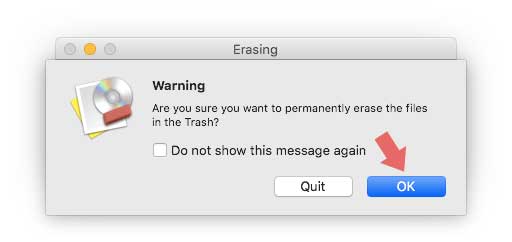 Allí podemos dar clic en la opción Ok para eliminar los archivos en el basurero de macOS Mojave: