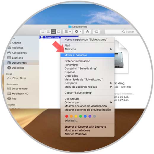 Todos los archivos que copiemos en la imagen del disco creada estarán encriptados, ahora podemos mover el archivo .dmg al basurero y de esta forma los archivos allí alojados se eliminarán de forma segura.
