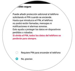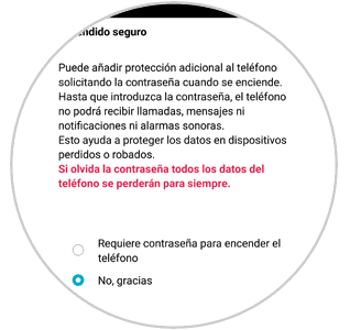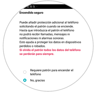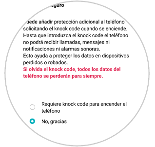 Dependiendo del tipo de desbloqueo de pantalla que elijas verás en la pantalla de tu terminal lo siguiente:
