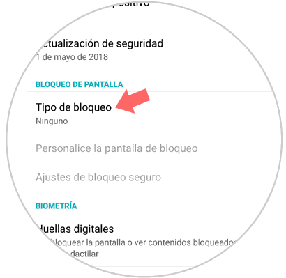 En la nueva pantalla, dentro del apartado “Bloqueo de pantalla” pulsa en “Tipo de Bloqueo” para continuar.