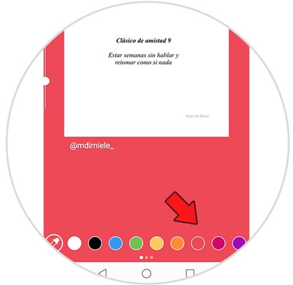 Ahora verás que aparece en la parte inferior una gama de colores. Selecciona aquel que quieres poner de fondo y mantén pulsada la pantalla en cualquier lugar que no se encuentre la publicación. Verás como este fondo cambia de color.