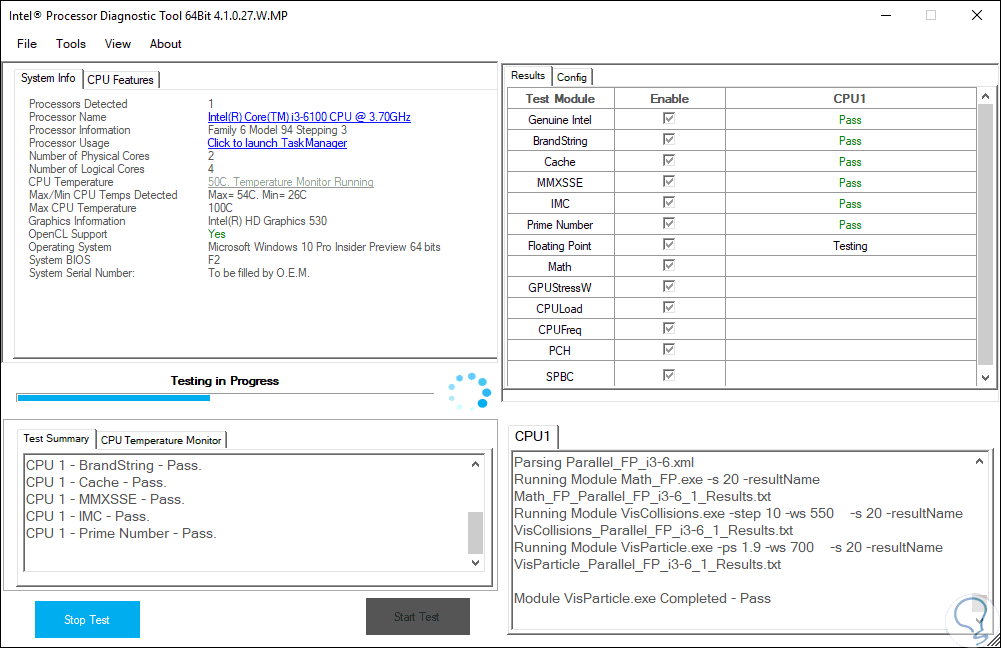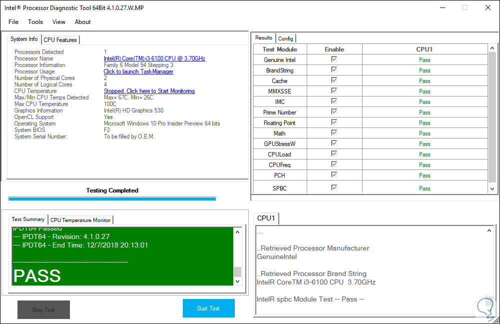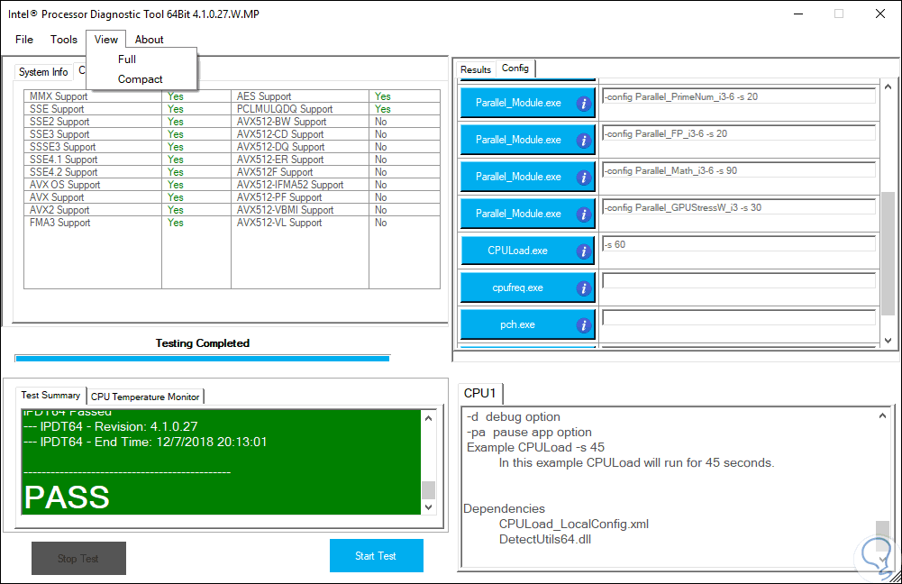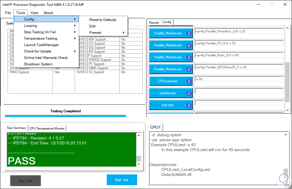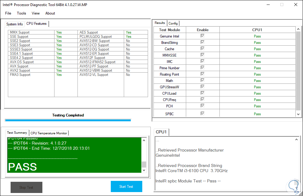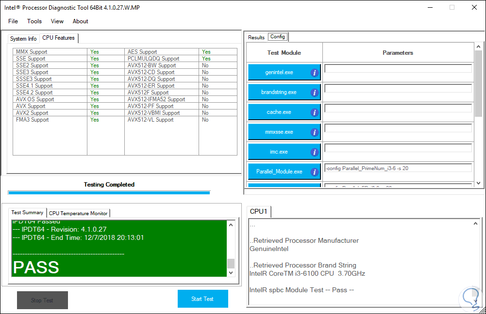 Actualmente se encuentra disponible la versión 4.1.0.27 de Intel® Processor Diagnostic Tool la cual es compatible con sistemas multiprocesador.