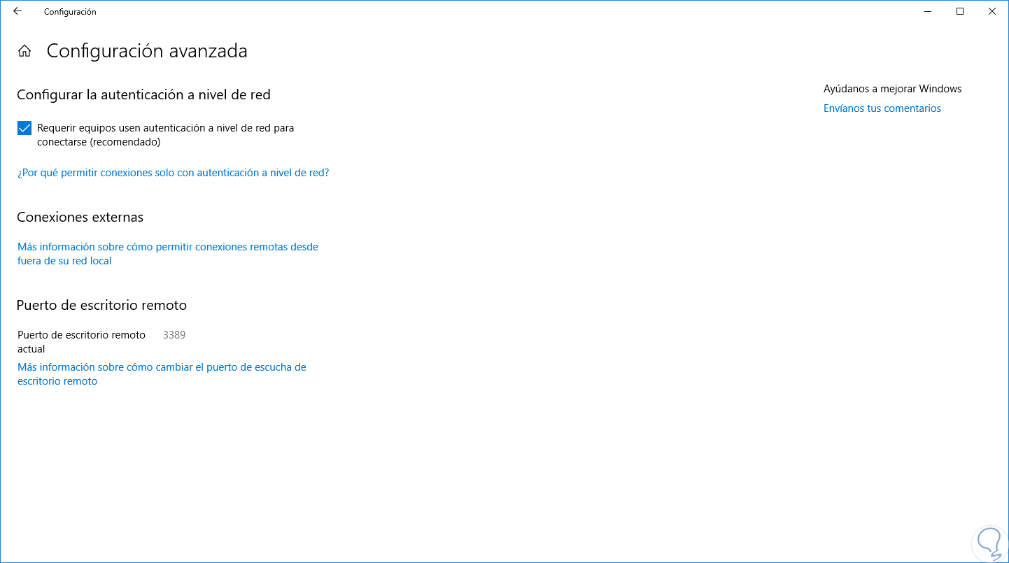 1. Habilitar el escritorio remoto con de Panel de control de Windows Server 2019