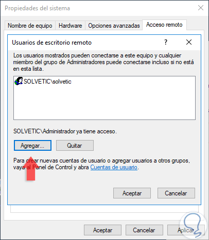 Si se requiere, podemos pulsar en el botón “Seleccionar usuarios” y desde allí elegir quién tendrá acceso. Una vez activemos esta casilla pulsamos en el botón Aplicar y Aceptar para guardar los cambios.