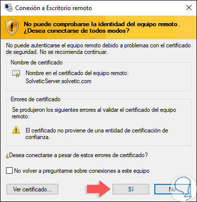 Allí damos clic en Sí y veremos que se inicia el proceso de conexión: