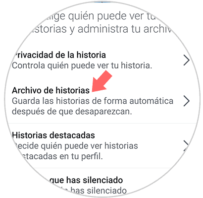 A continuación tienes que seleccionar entre los cuatros apartados disponibles, la opción de "Archivo de historias"