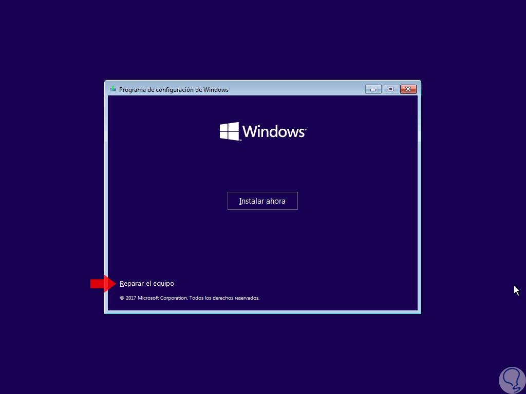 Seleccionamos nuestro idioma y pulsamos en Siguiente y en la próxima ventana pulsamos en la línea inferior “Reparar el equipo”: