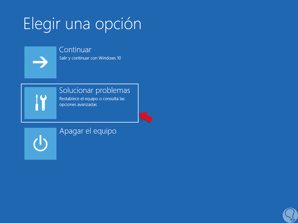 Allí seleccionamos la opción “Solucionar problemas” y serán desplegadas las siguientes alternativas: