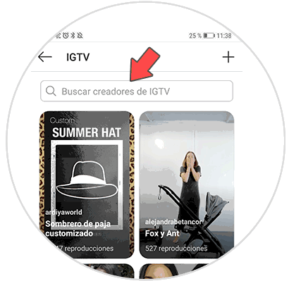 Lo siguiente que verás será una serie de vídeos de IGTV. En la parte superior verás un buscador el cual puedes usar para buscar vídeos o cuentas.