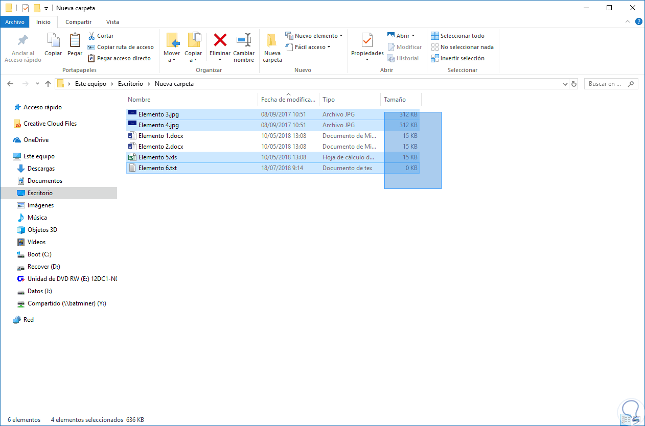 Una de las opciones que poco conocemos, y que puede llegar a ser de gran ayuda es la función “invertir selección” gracias a la cual tiene como función básica modificar, como su nombre lo indica, una selección de archivos, es decir, cuando tenemos seleccionados determinados archivos y carpetas de una ruta particular, se puede cambiar esa selección y con ello seleccionar todo lo contrario, es decir, todos los elementos que no tenemos seleccionados actualmente en la ruta en Windows 10. Esta es una característica nativa de Windows 10 y es una función que sólo funciona en el Explorador de archivos y no en ninguna otra parte de Windows 10.