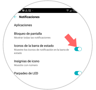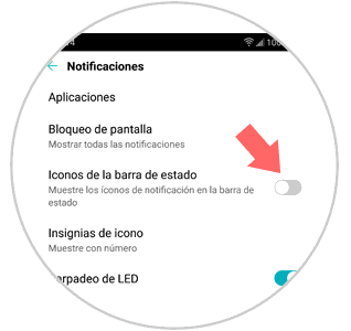 Accederás a una nueva pantalla donde verás la opción “Iconos de la barra de Estado”. Desliza la pestaña hacia la izquierda y verás como los iconos desaparecen de la barra de estado.