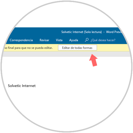 De ahora en adelante al acceder a este archivo veremos lo siguiente. Si deseamos habilitar la edición del mismo basta con pulsar en el botón “Editar de todas formas”.