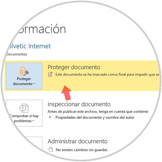 Pulsamos en Aceptar para salir de esta ventana y veremos resaltada la sección “Proteger documento”: