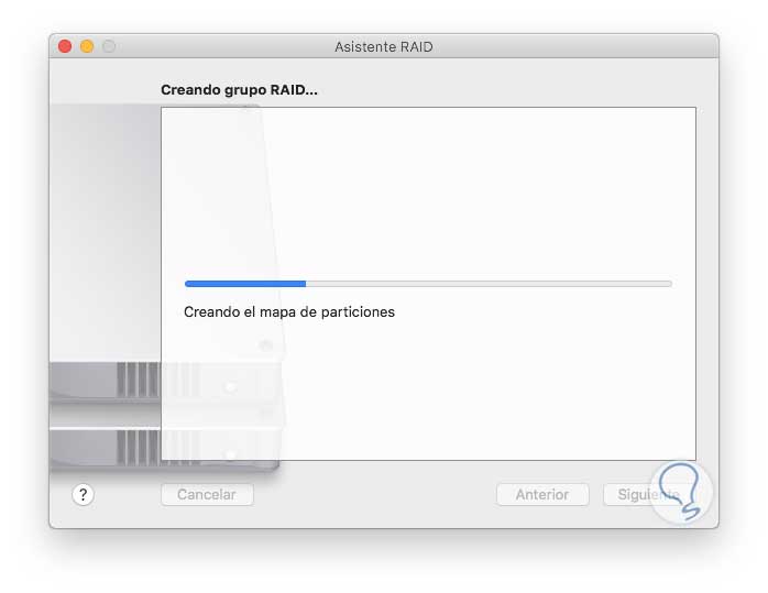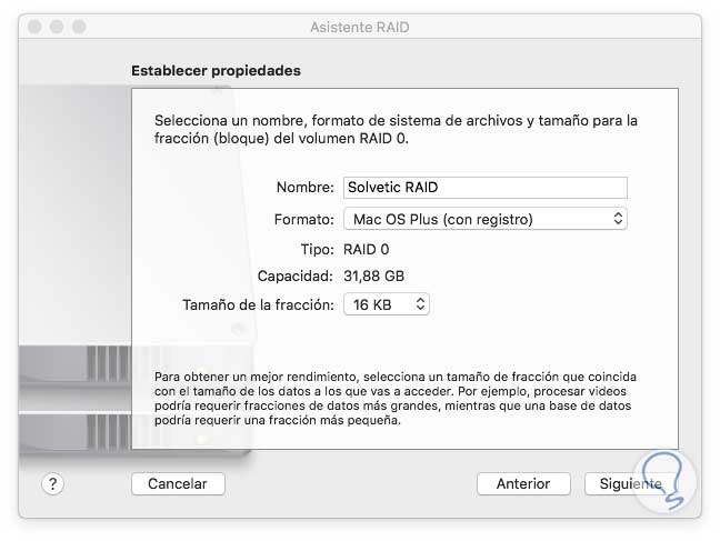 Se desplegará el siguiente asistente donde seleccionaremos el tipo de RAID a implementar en macOS Mojave: