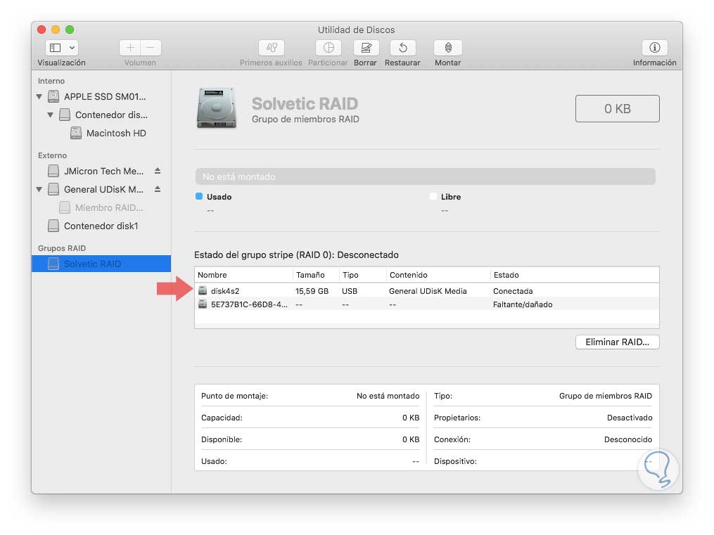 3. Cómo eliminar un grupo RAID en macOS Mojave