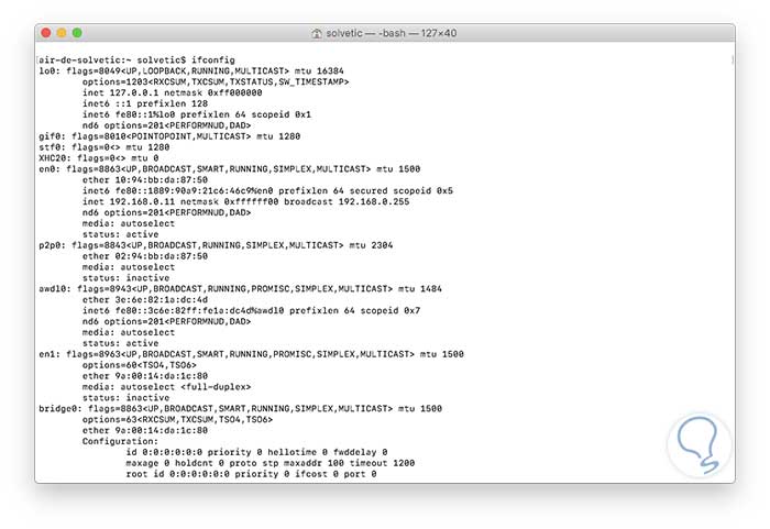 Desde la terminal ejecutando el comando ifconfig: