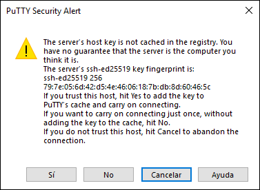 Como vemos se requiere que ingresemos yes cuando se pregunta si deseamos establecer la conexión.