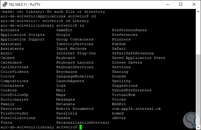 Al acceder por SSH a través de Putty, podremos listar librerías:
