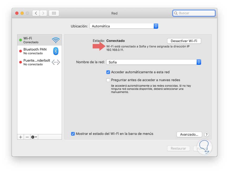Desde Preferencias del sistema / Red: