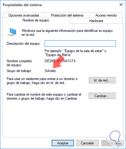 1. Cómo cambiar nombre de grupo de trabajo usando las propiedades del sistema Windows 10