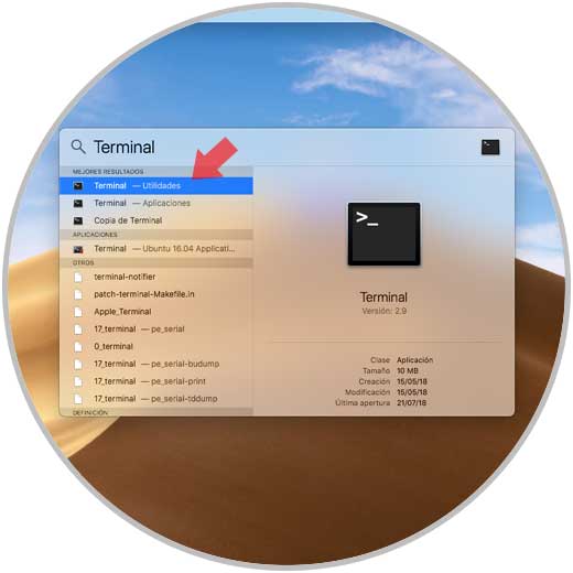 3. Cómo abrir terminal en Mac OS desde Spotlight