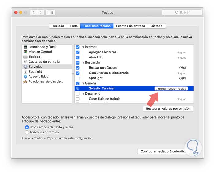 Al seleccionarlo será posible añadir algún atajo de teclado y para ello damos clic en el campo Agregar función rápida y pulsamos las teclas deseadas para que sean asignadas: