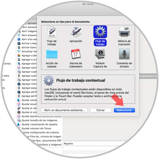 Se desplegará el siguiente asistente donde activaremos la opción Flujo de trabajo y pulsamos en el botón Seleccionar: