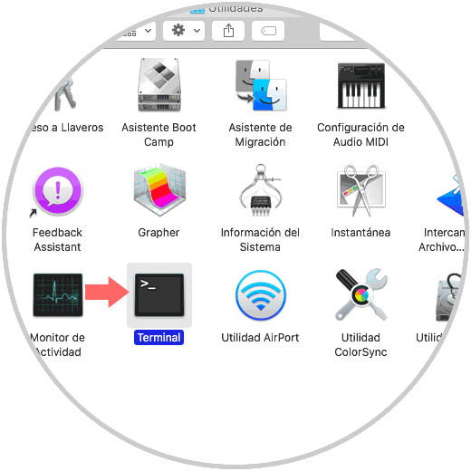 Por defecto la terminal esta preinstalada en la carpeta "Utilidades" de modo que para acceder a ella contamos con las siguientes opciones: