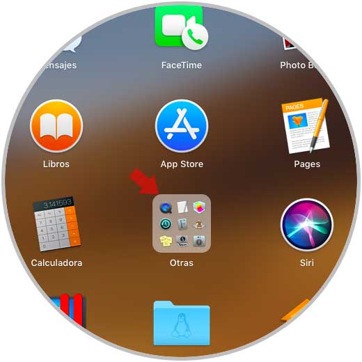 El Launchpad es un lanzador propio de macOS mediante el cual se tiene acceso a todos los elementos de la biblioteca Aplicaciones, su icono está representado por un cohete en el dock, basta con pulsar sobre el y en la ventana reflejada ubicar la carpeta Otras: