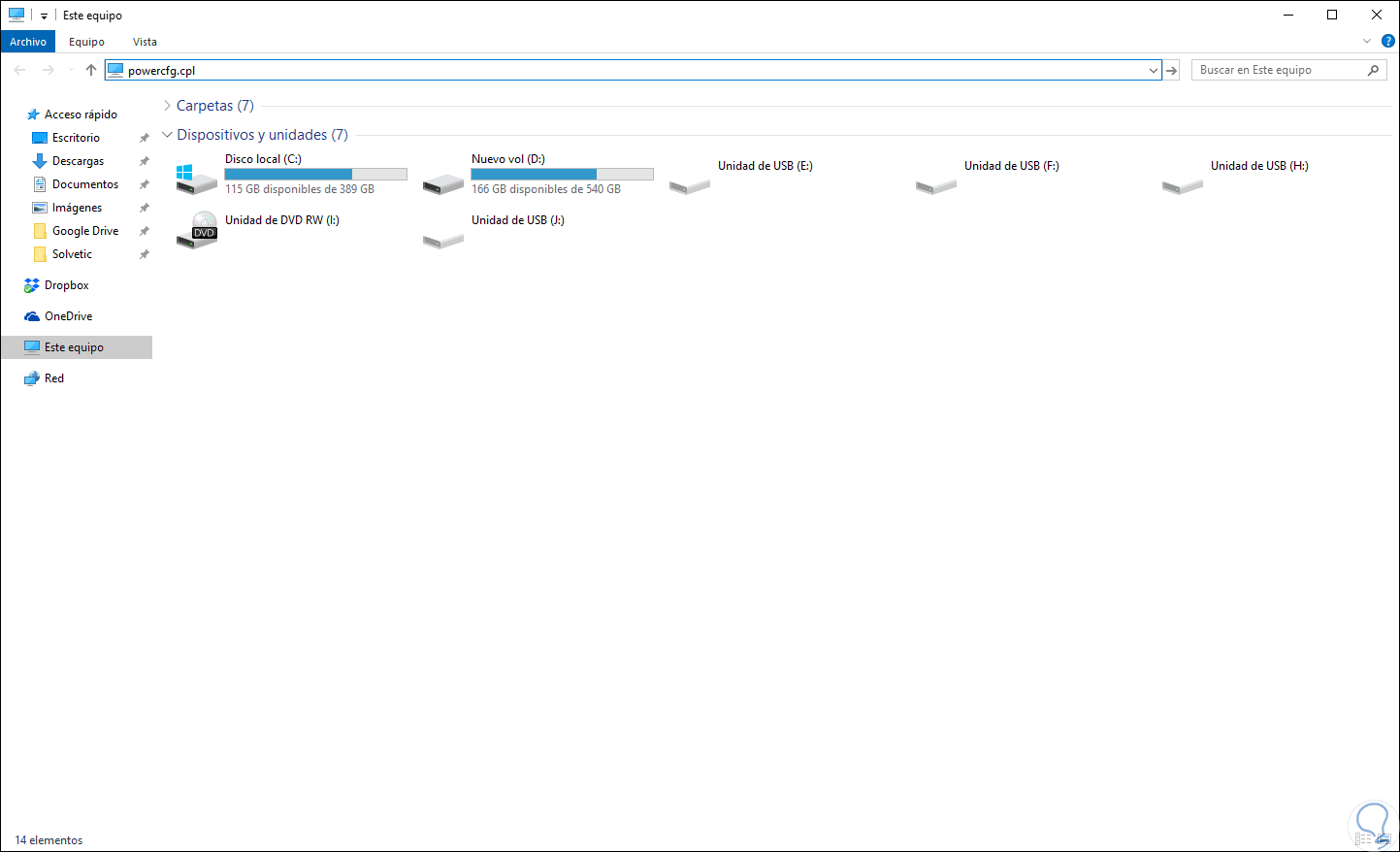 7. Abrir Opciones de energía desde Explorador de archivos en Windows 10