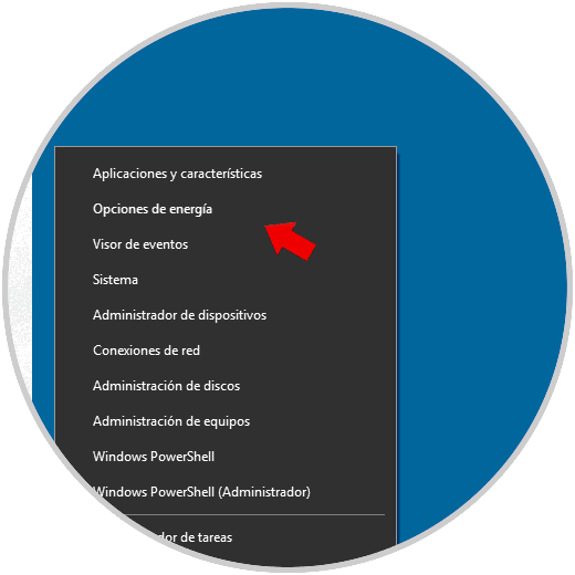 4. Abrir Opciones de energía desde Menú contextual en Windows 10