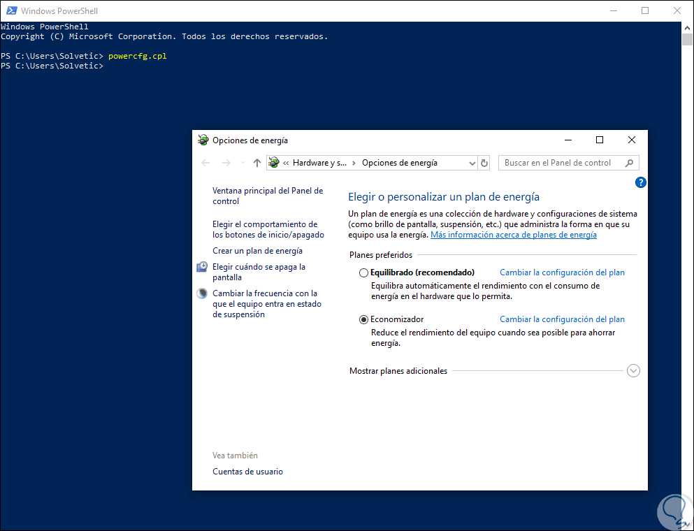 5. Abrir Opciones de energía desde Windows PowerShell en Windows 10