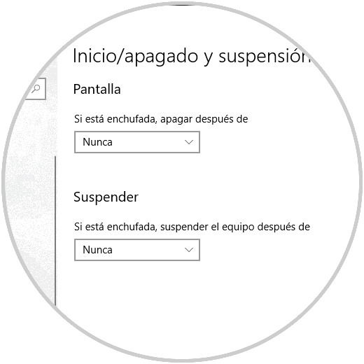Seleccionamos la categoría “Sistema” y en la nueva ventana vamos a la categoría “inicio/apagado y suspensión”:
