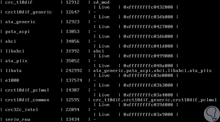 Para obtener una lista de todos los módulos del kernel de Linux y su respectivo estado, vamos a ejecutar lo siguiente.