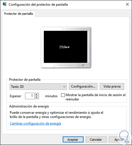 Tras realizar los cambios podemos ver cómo quedaría nuestro nuevo protector de pantalla aunque también podemos usar la opción de “Vista previa”.