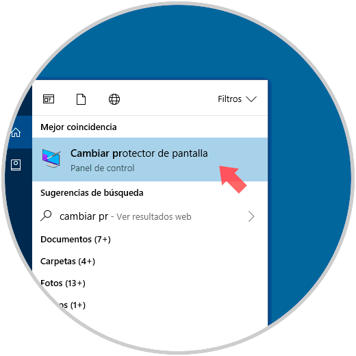 2. Cambiar configuración del protector de pantalla desde buscador en Windows 10