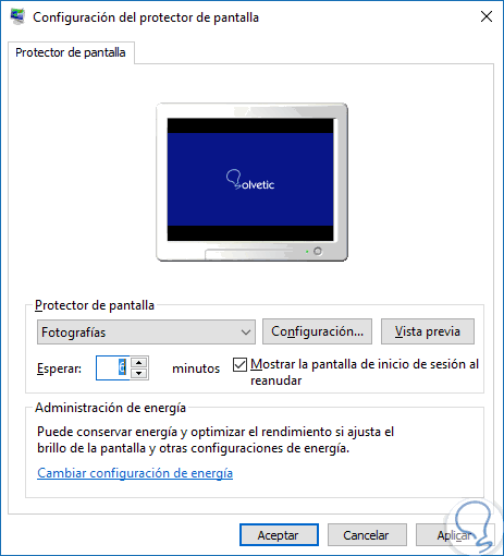 Ahora veremos otra opción sencilla para poder cambiar las opciones de nuestro protector de pantalla.