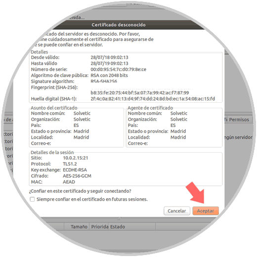 6. Cómo acceder a FTP usando SSL/TLS en Ubuntu 18