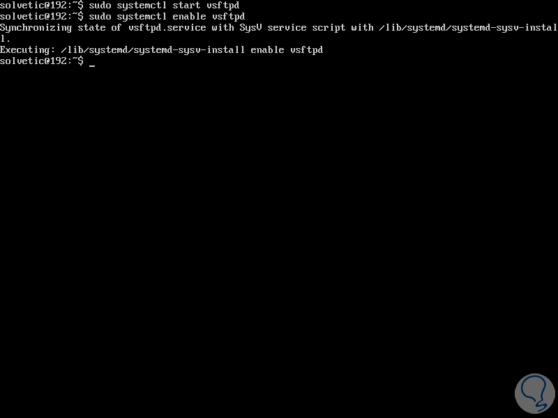 sudo systemctl start vsftpd sudo systemctl enable vsftpd