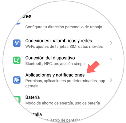Deste este menú, pulsar la sección “Aplicaciones y notificaciones” y pulsa sobre ella