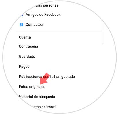 Una vez aquí, debes desplazarte hacia la sección en la que pone “Cuenta” y hacer clic sobre el apartado “Fotos originales”.