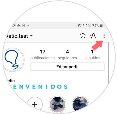 Lo primero que debes hacer es entrar en tu cuenta de Instagram y seleccionar el icono de los tres puntos situado en la esquina superior derecha.