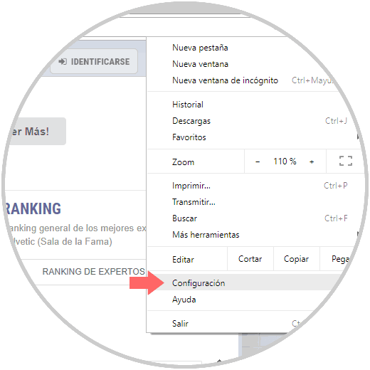 Esto puede ser la causa del error mencionado y para deshabilitar dicha tecnología vamos a Google Chrome y allí pulsamos en el icono Personaliza y controla Google Chrome y en las opciones desplegadas seleccionamos Configuración: