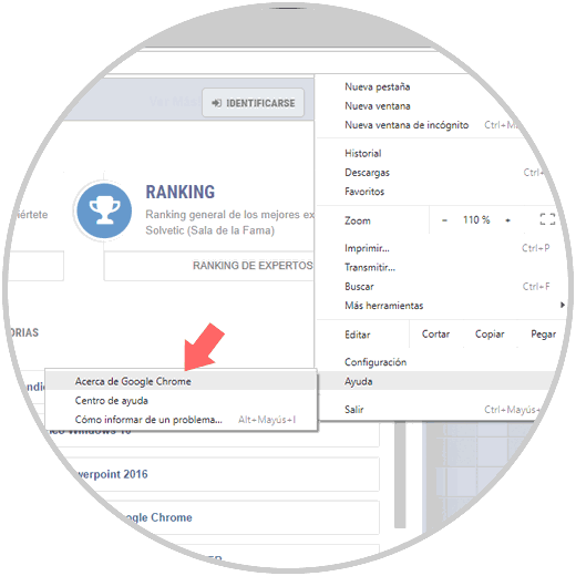 Para buscar las actualizaciones para Google Chrome vamos al menú Personaliza y controla Google Chrome e iremos a la ruta