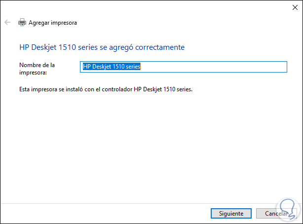 De nuevo pulsamos en "Siguiente" y así confirmamos que la impresora ha sido añadida de forma correcta: