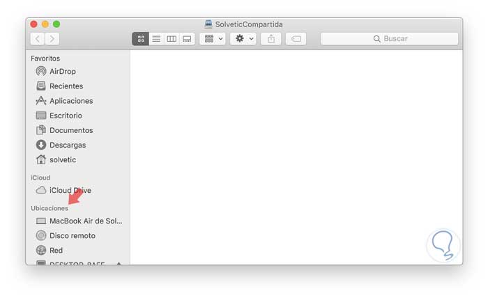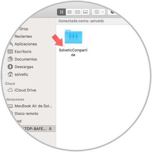 Desde la sección Ubicaciones en el Finder será posible acceder a dicho equipo remoto: